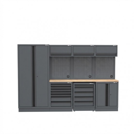 Semloc WorkSpace Kombi-Werkstatteinrichtung mit Arbeitsplatte aus Holz, Abmessung 2955x495x2000