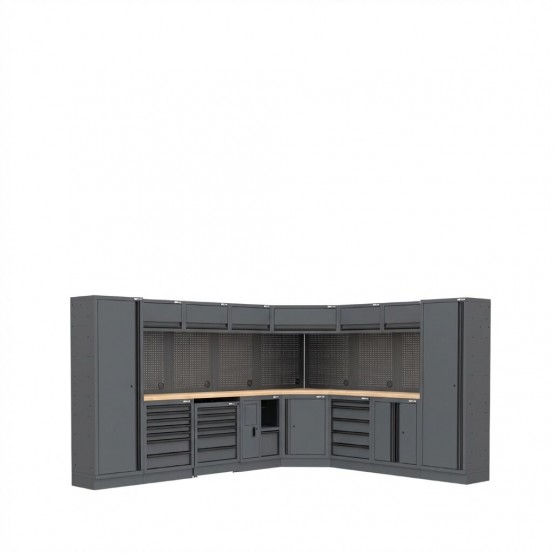Semloc WorkSpace Kombi-Werkstatteinrichtung mit Arbeitsplatte aus Holz, Abmessung 3500/2800x495x2000