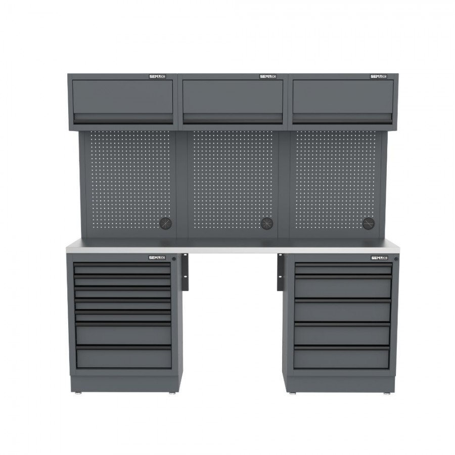Semloc WorkSpace Kombi-Werkstatteinrichtung mit Edelstahl-ummantelter Arbeitsplatte 2400x495x2000 mm