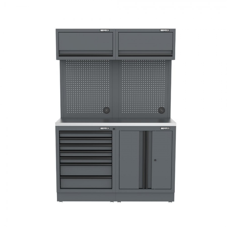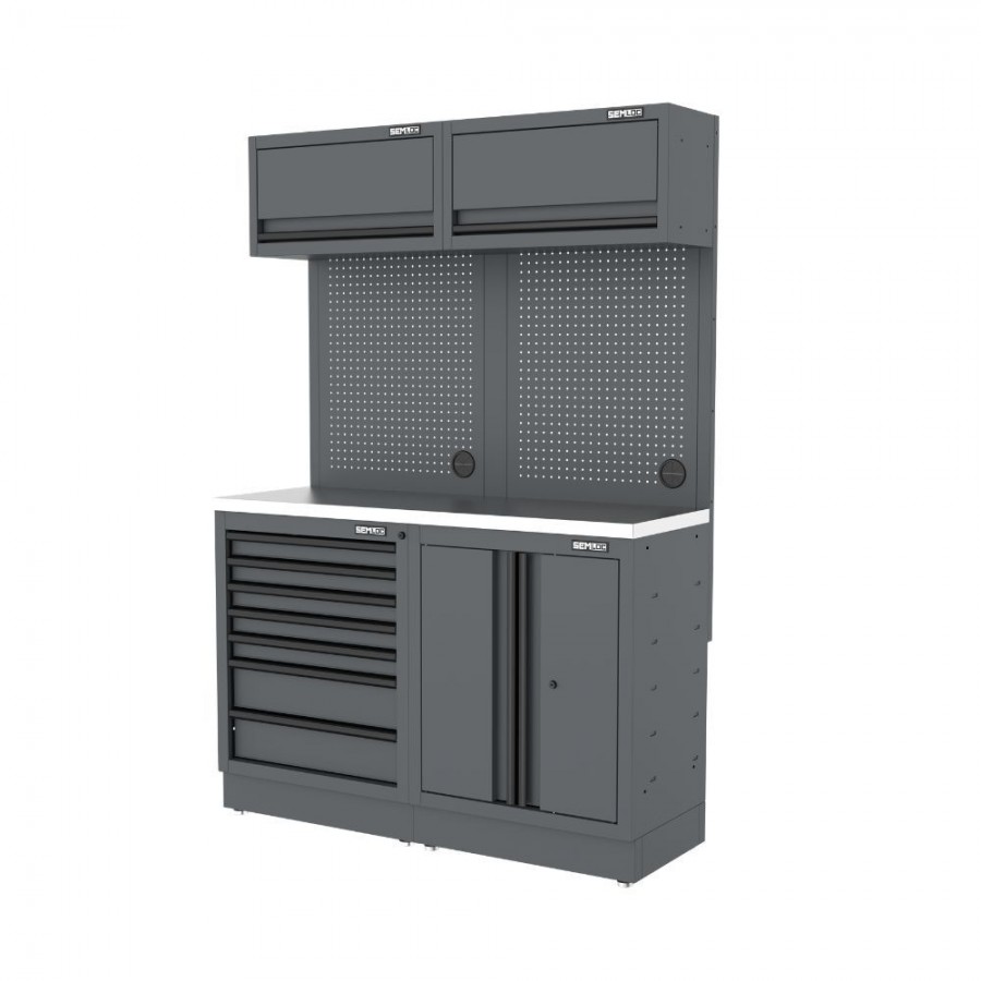 Semloc WorkSpace Kombi-Werkstatteinrichtung mit Edelstahl-ummantelter Arbeitsplatte, Tiefe Arbeitsplatte