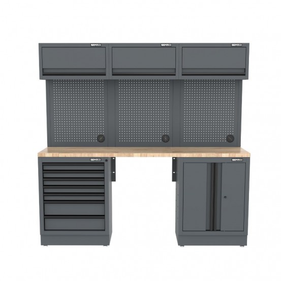 • Semloc WorkSpace Kombi-Werkstatteinrichtung mit Holz-Arbeitsplatte 2400x495x2000 mm
