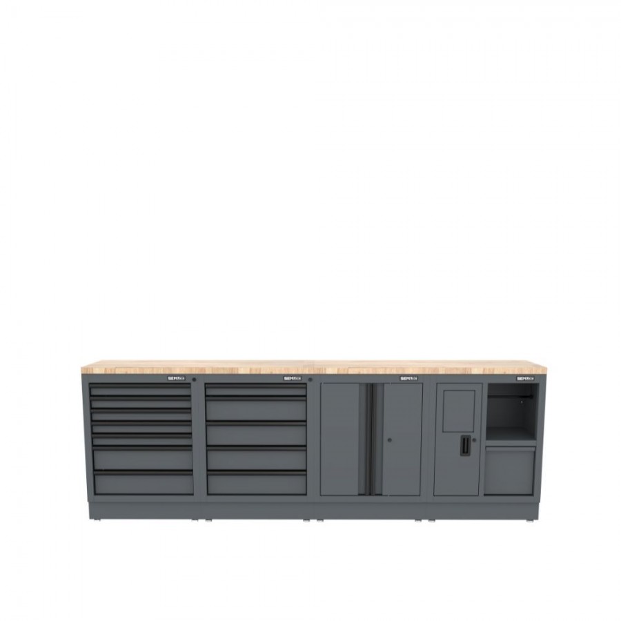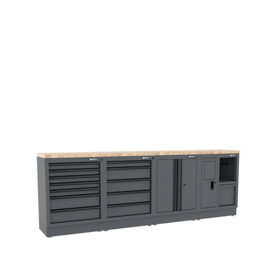 Semloc WorkSpace Kombi-Werkstatteinrichtung mit Holz-Arbeitsplatte 2720x495x950 mm