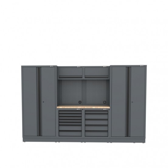 • Semloc WorkSpace Kombi-Werkstatteinrichtung mit Holz-Arbeitsplatte 3180x495x2000 mm
