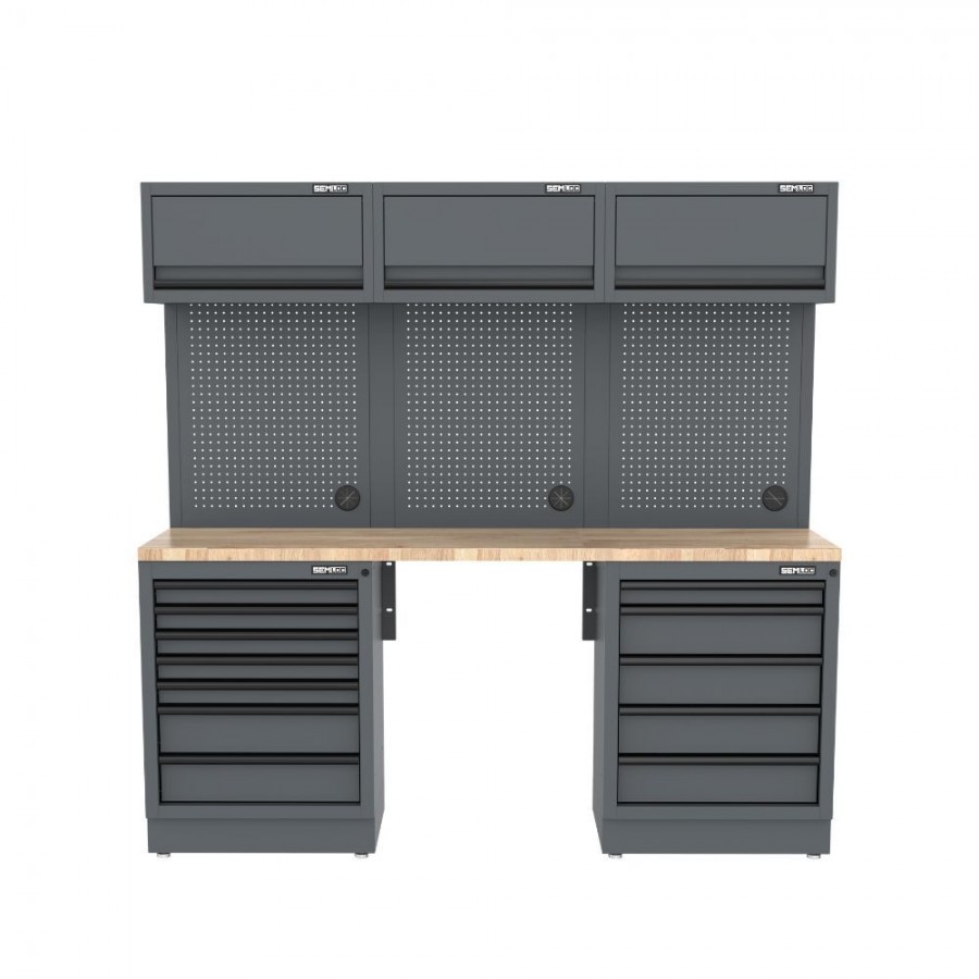 Semloc WorkSpace Kombi-Werkstatteinrichtung mit Holz-Arbeitsplatte,Tiefe Arbeitsplatte