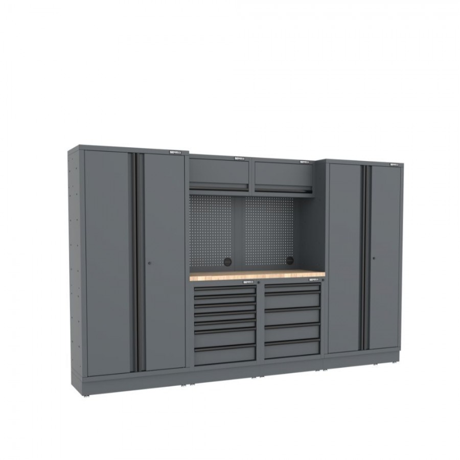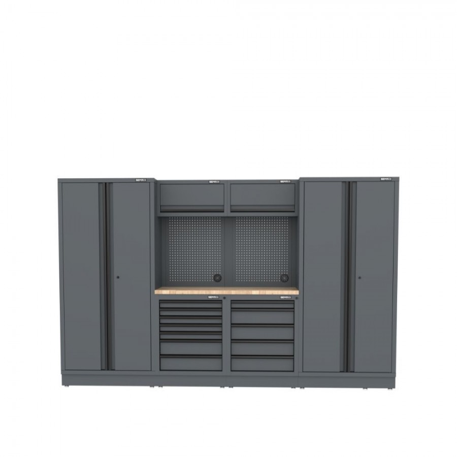 • Semloc WorkSpace Kombi-Werkstatteinrichtung mit Holz-Arbeitsplatte, Tiefe Arbeitsplatte